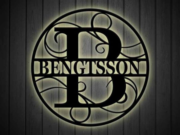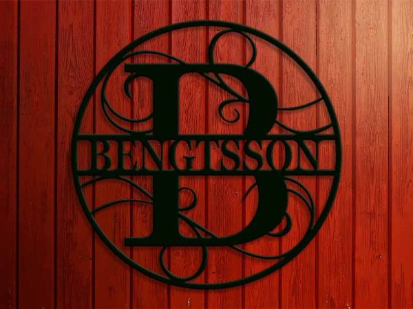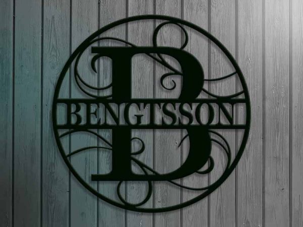 Personligt och detaljrikt figurskuret monogram bokstav B i en rund snygg ram som ni anpassar med ert namn eller text.