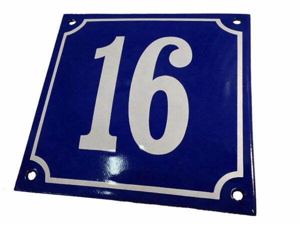 Stilren fyrkantig emaljskylt för ditt husnummer finns i flera storlekar!