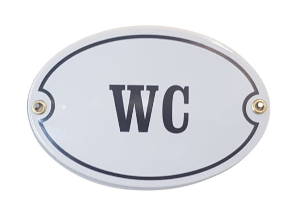 Emaljskylt WC är en stilren och tidlös skylt som tydligt markerar badrum eller toalett med klassisk känsla. Den vita emaljerade ytan i kombination med svart text ger ett rent och lättläst uttryck som passar i såväl moderna som traditionella miljöer. Den äkta kupade emaljen bidrar med djup och en genuin hantverkskänsla som ger skylten dess unika karaktär. Perfekt för både hem, sommarstuga eller offentlig miljö där funktion möter estetik. En hållbar och dekorativ detalj som lyfter helhetsintrycket på ett diskret sätt.