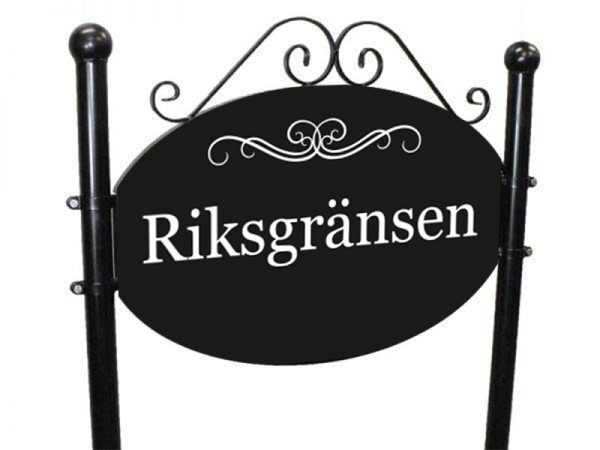 Tillverkas både med skyltstorlek 750x500mm och 900x600mm. Valsat plattstål i överkant på skylt för en bra stabilitet i skylten.