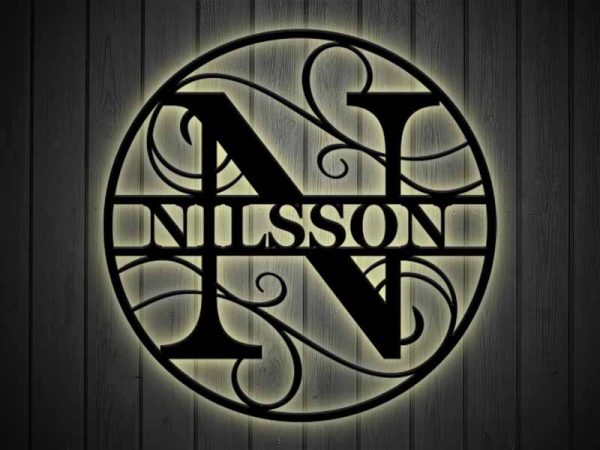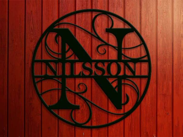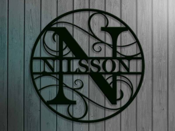 Personligt och detaljrikt figurskuret monogram bokstav N i en rund snygg ram som ni anpassar med ert namn eller text.