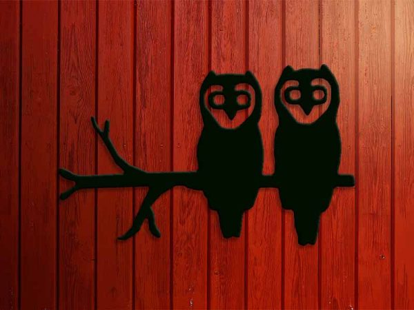 Detaljrikt figurskuret motiv av ugglor sittandes på en gren.