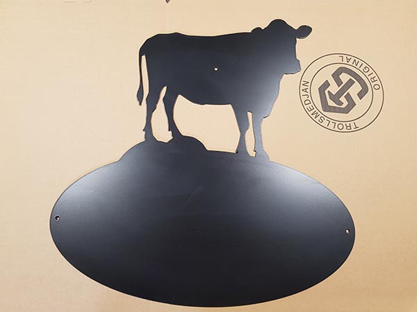Väggskylt oval med motiv av en ko. Oval 500×250 (500×570)